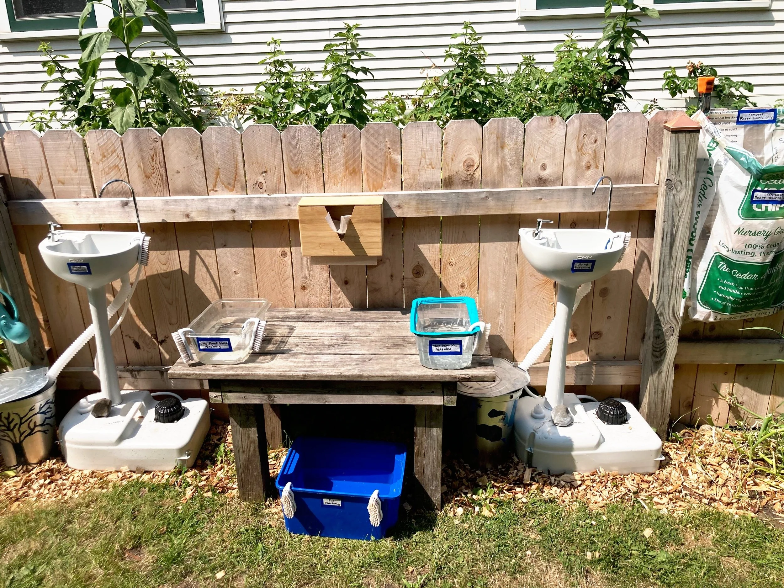 we have 2 outdoor hand-washing sinks with soap and running water